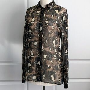Just Cavalli Button Front 100% Silk Sheer Animal Reptile Print Sheer S IT40 NWT