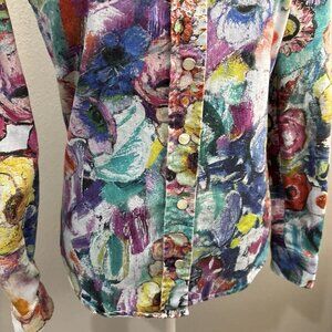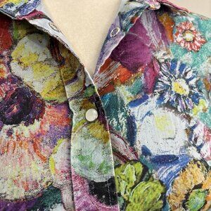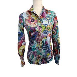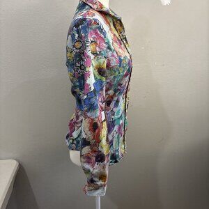 Just Cavalli Floral Art Wear Made In Italy Snap Button Blouse Women 40 / Small