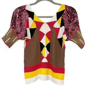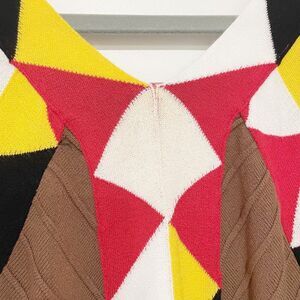 Just Cavalli Knit & Silk Mixed Fabric Brown Short Puffed Sleeve V Neck Cardigan