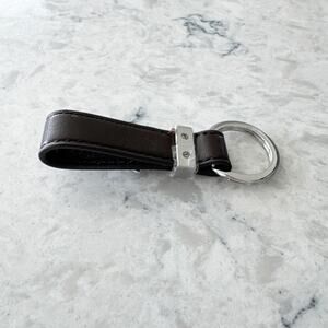 Brown leather Just Cavalli key ring features a silver logo anchor charm for everyday use.