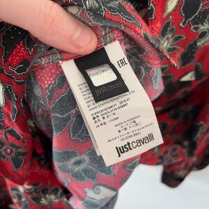 Just Cavalli Men's Floral-Print Shirt Size 48 Color Red Black