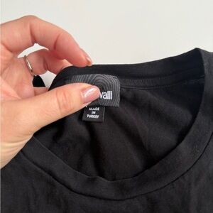 Tags just cavalli black leopard print t shirt mens large graphic tee crewneck short sleeve casual streetwear designer fashion italian brand bold print statement piece cotton fabric relaxed fit edgy style urban wear luxury clothing animal print top versatile outfit premium quality modern design iconic logo comfortable wear trendsetting apparel high fashion casual look