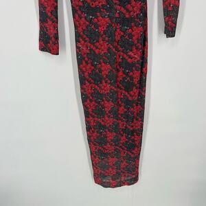 Just Cavalli Midi Dress Ruche Half Sleeve V Neck Mesh Y2K Red Black Size 40 2