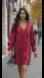 Elegant long sleeve dress with a V-neck. Features a vibrant red and pink pattern. Ideal for a chic look.