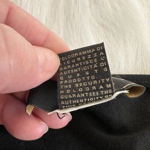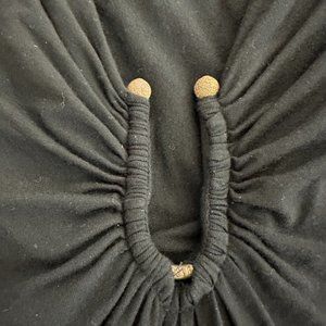 Just Cavalli Roberto Cavalli Black Knit Dress with Deep V-Neck Brass/Gold Accent - Mid Length Fit Flare Knit with Puff Sleeves - Womens Size 10 (Italian 46)