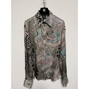 Just Cavalli Shirt Mens 50 Gray Paisley Animal Print Made Italy Long Sleeve Silk