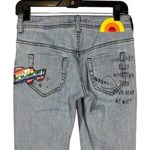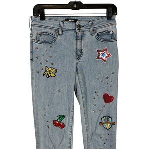 Just Cavalli Studded Low Rise Skinny Jeans With Patches & Graphic Art Size 25