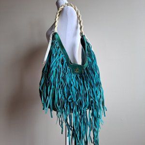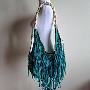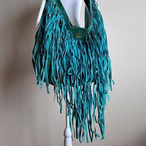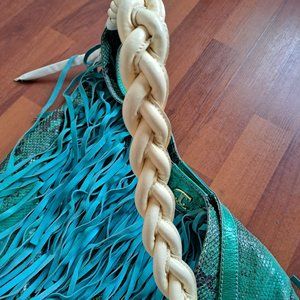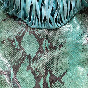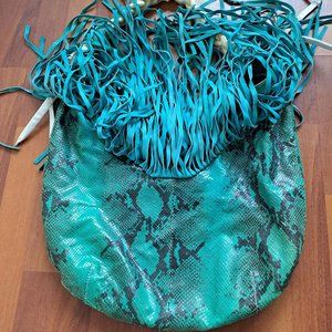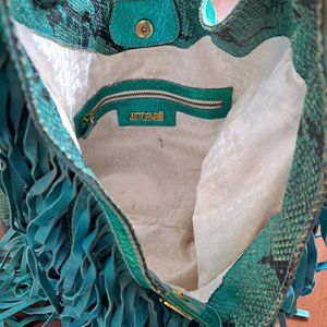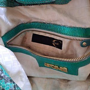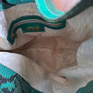 Just Cavalli Women's Python Snake Leather Green/Blue Shoulder Bag