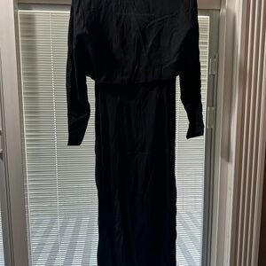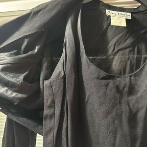 Just Choon Black 2 Piece Set Dress and Jacket with White Stripes and Split