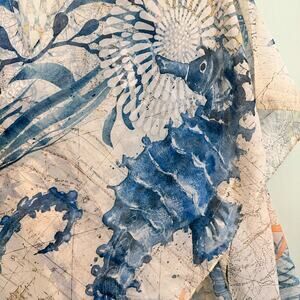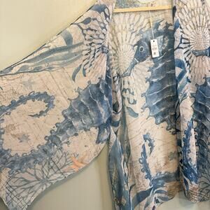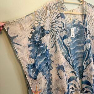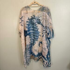 Just Classic Sunny Kaftan Swim Cover Up Womens OS Blue Silk Blend Sea Horse NWT