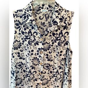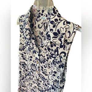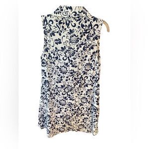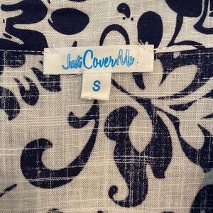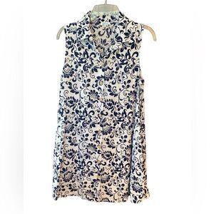 Just Cover Me Sz S Navy Blue White Floral Print Sleeveless Pockets Cotton Dress