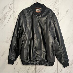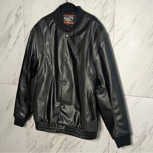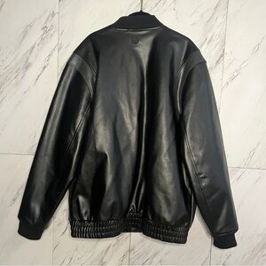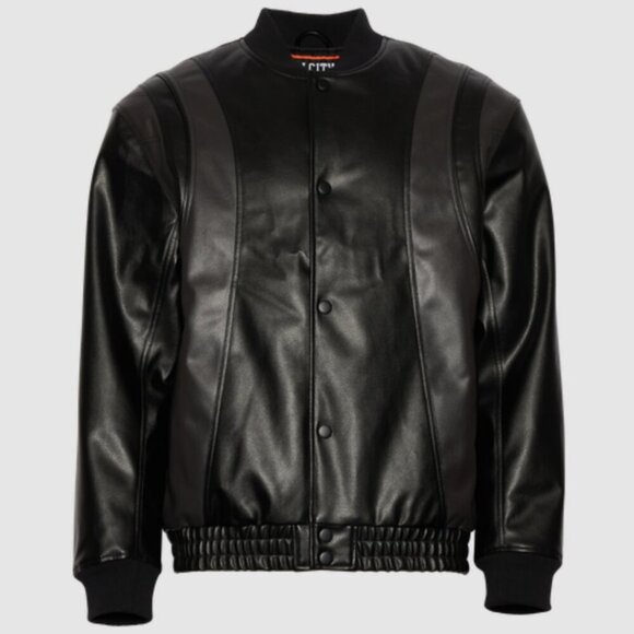 Just Don All City Roster Varsity Snap Button Black Leather Jacket SZ L