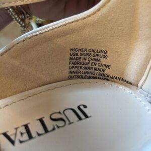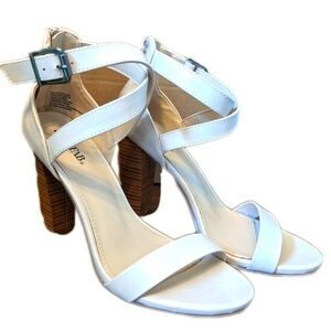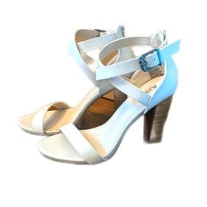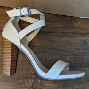 Just Fab 4" heeled nude cream sandals - faux leather - zipper back - 8.5