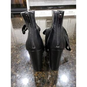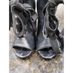 Just Fab Ankle Wrap Booties Women's 8 Black Leather Harper Peep Toe Back Zip
