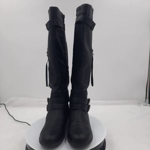 Just Fab Ardera Black Faux Leather, Buckle Straps Inside zip knee high boots 7