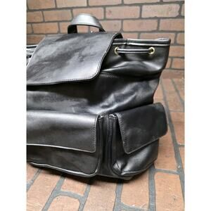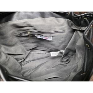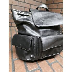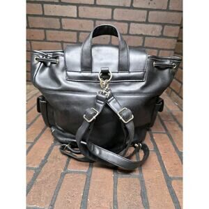 Just Fab Black Faux Leather Pebbled Backpack Adjustable Straps Fold Over Flap