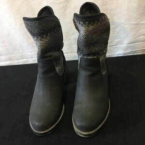 Just Fab Block Heeled Boots, grey ombre gently used. few scuffs on the heels but still have a lot of life left in them