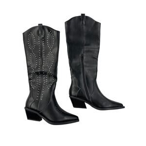 Just Fab - Casey Western Cowboy Boot in Black and Silver