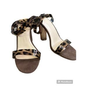 Just Fab Cheetah Print Hanna Transparent Heeled Peep Open Toe Sandal Size 7.5