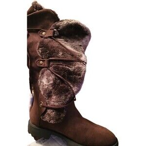 Just Fab Chicory Coffee Winter Flat Boots, Demi Faux Fur, Size 9
