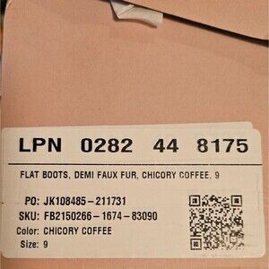 Just Fab Chicory Coffee Winter Flat Boots, Demi Faux Fur, Size 9 NEW