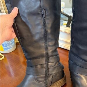 Just Fab Dark Navy Blue Winter Boots with sweater Trim Wide calf size 9