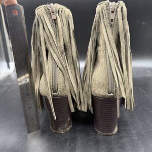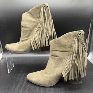 Just Fab Mercenne Fringe Ankle Bootie Womens Size 9 Sage Pointed Toe Suede