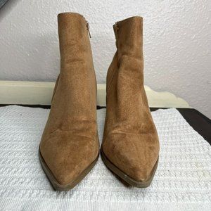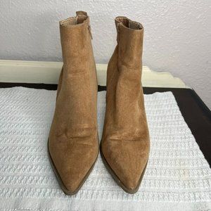 Just Fab Olwen Camel Textile Pointed Toe Zipper Block Heel Ankle Booties Size 8