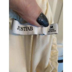 Elevate your wardrobe with these JustFab pale yellow wide-leg pants featuring a trendy paperbag waistline and elastic waist that provides maximum comfort. The pants are made of high-quality polyester material that is machine washable for easy care. These versatile pants come in size M and have a 30-inch waist size and 32-inch inseam.