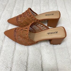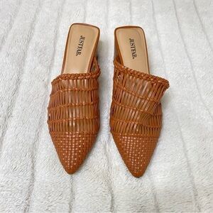 Just Fab Pointy Toe Tan Woven Mules Boho Size 7.5