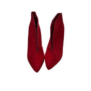 Just Fab Red Stiletto Heel Ankle Bootie Women's Sz 7 Cut Slit Front Pointed Toe