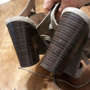 Just Fab Sandals, tan with brown chunky heel. Worn one season, not perfect, but still look good!