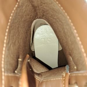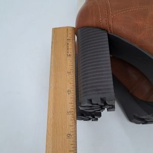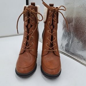 NWOB Just Fab Saddle Brown 4" Block High Heel Boots Sherpa Trim Lug Sole.