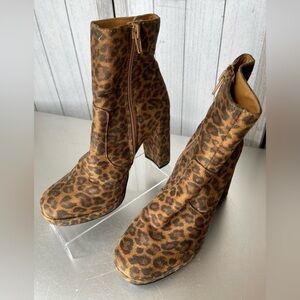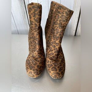 Just Fab Womens Ankle Boots Brown Leopard Print Zip Size 6.5