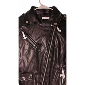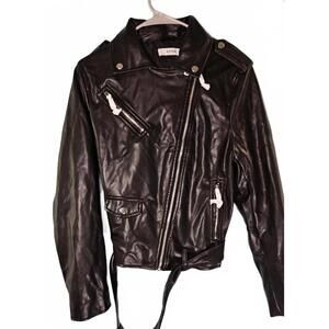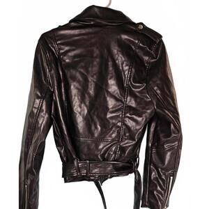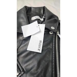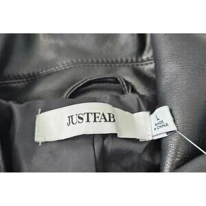 Just Fab Women's Belted Black Faux Leather Biker Jacket New With Tags Size Large