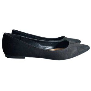 Just Fab Women's Black Flat Pointed Toe Faux Suede Shoes Size 9