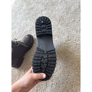 Just Fab Women's Size 7 Brown Ankle Combat Boots Fur Hiker Lace Up Baddie