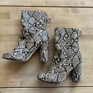 Just Fab Womens Snake Skin Pointed Estrella Zip Boots Size 9