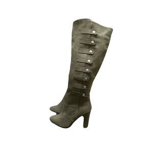 Step out in style with these fabulous JustFab olive green long boots! These boots are a beautiful shade of green that will complement any outfit.