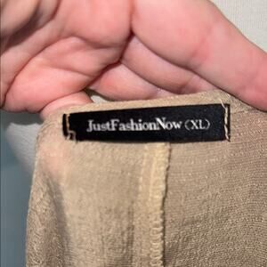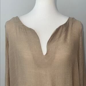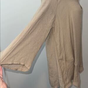 Just Fashion Now Tan Tunic Sharkbite Linen Blouse Boho Top Women's XL