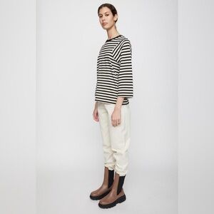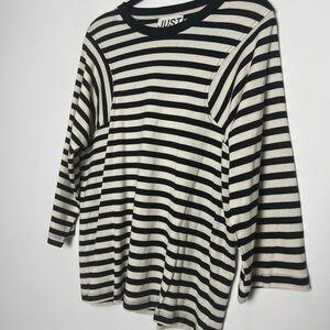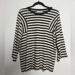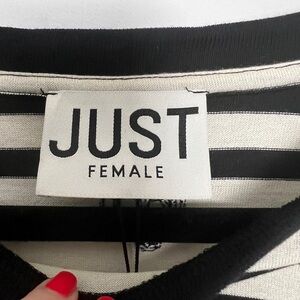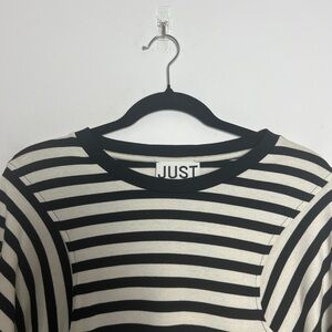 Just Female Black and White Striped Long Sleeve Top Size Medium Organic Cotton