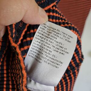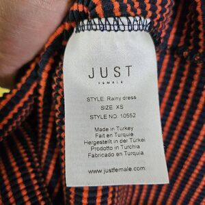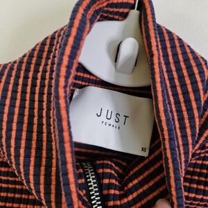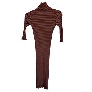 Just Female Dress XS Red Striped Ribbed Zip Mock Neck Midi Stretchy 3/4 Sleeves