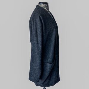 Just Female Long Open Front Wool Blend Cardigan Blazer Charcoal Gray