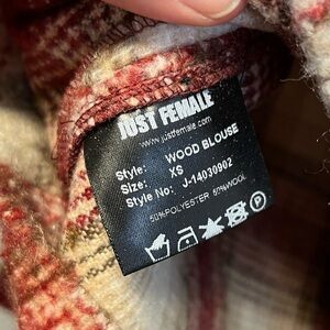 Just Female Plaid Wood Blouse Wool Blend Mock Neck