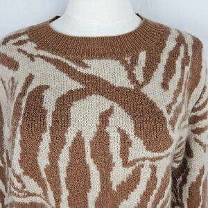 Just Female Sweater Medium Jungle Knit Wool Mohair Animal Print Brown/White