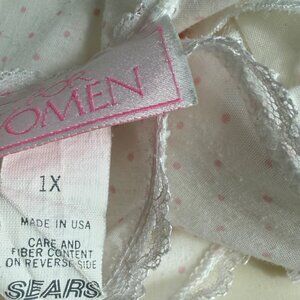 Vintage Sears Just For Women White Nightgown With Pink Polka Dots & Lace Trim V-Neckline Sleeveless Size 1X Made in USA