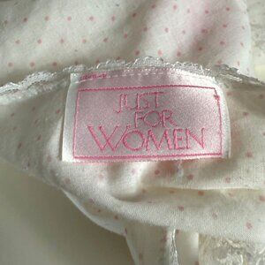 Just For Women White Nightgown Size 1X Pink Polka Dots VTG Lace Trim Sleeveless