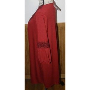Just Found burnt orange blousen dress, size plus 2X. V-neck wit crochet trim at neck & sleeves. Criss-cross on the v-neck. Pullover. New with tags. Soft rayon machine washable material.