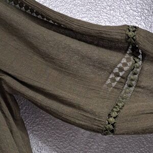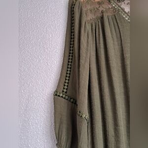 Just Found Plus Size Olive Blouse/Tunic With Lace Shoulders & Embellishments