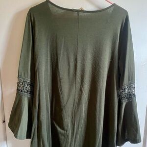 XL Just Found olive green lace sleeve dress with crisscross v-neck, made of viscose rayon blend. Giving the fabric a soft, breathable, and slight stretch feeling. Perfect for casual outings, outdoor gatherings, or semi-formal events.